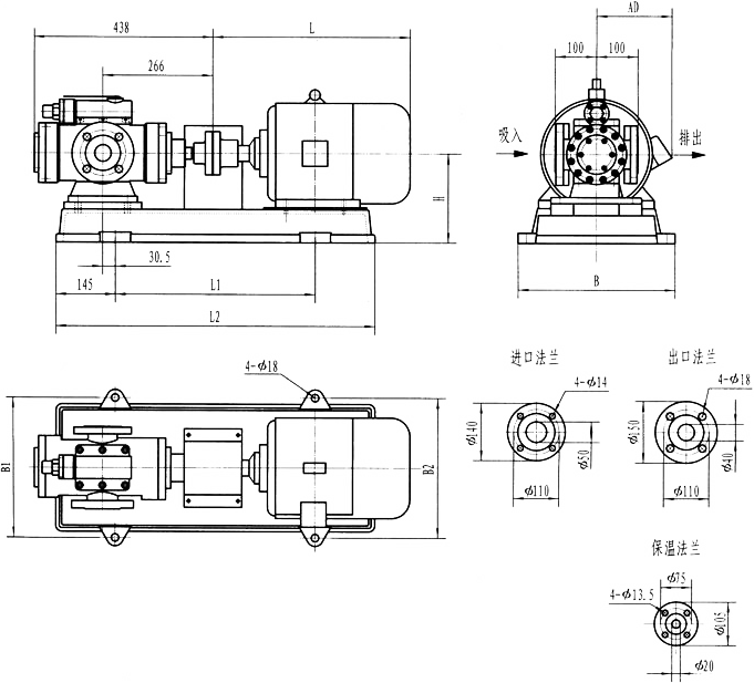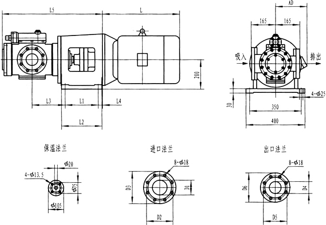 3GLBW35,3GL35 type flange type pump outline and installation dimensions