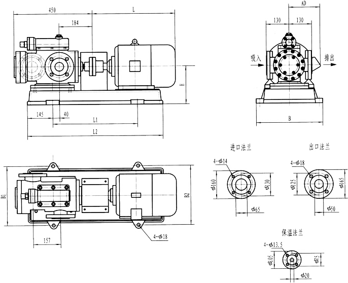 3GBW130(140),3G130(140) type flange type pump outline and installation dimensions