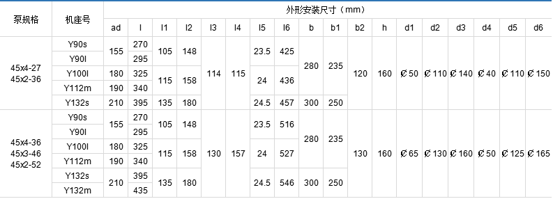 3GBW45,3G45 type flange type pump outline and installation dimensions