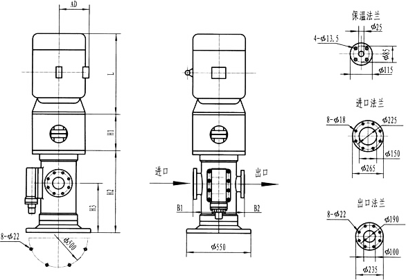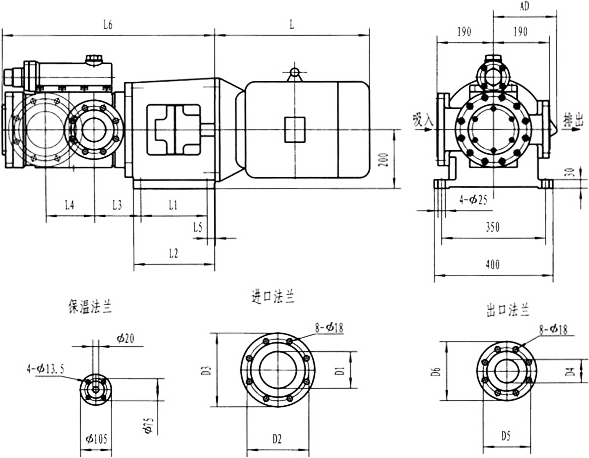 3GBW60(70),3G60(70) type flange type pump outline and installation dimensions