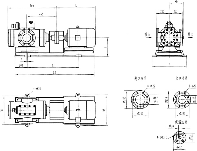 3GBW80(85),3G80(85) type flange type pump outline and installation dimensions