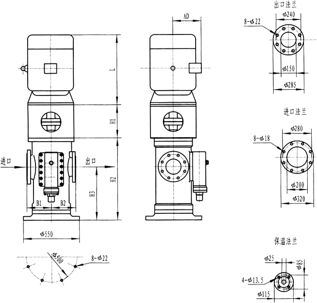 3GLBF80(85),3Gl80(85) type flange type pump outline and installation dimensions
