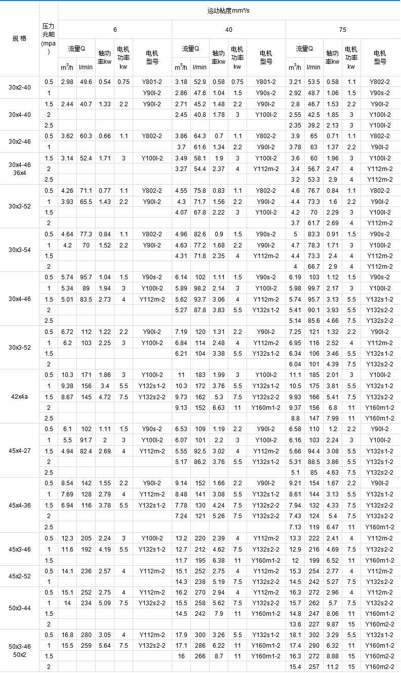 3GBW.3G.3GR系列螺桿泵性能參數(shù)表 (轉(zhuǎn)速: 960r/min)